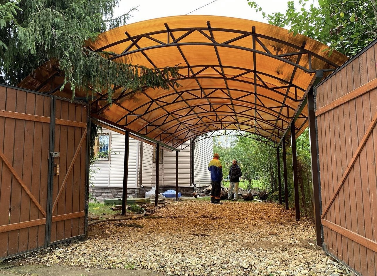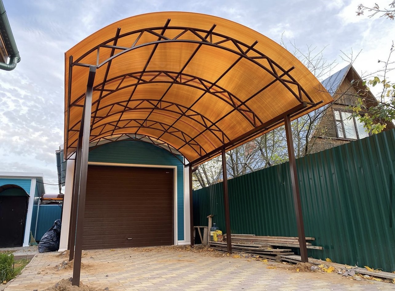 Наши навесы из поликарбоната в Подольске и Московской области используются для оснащения: