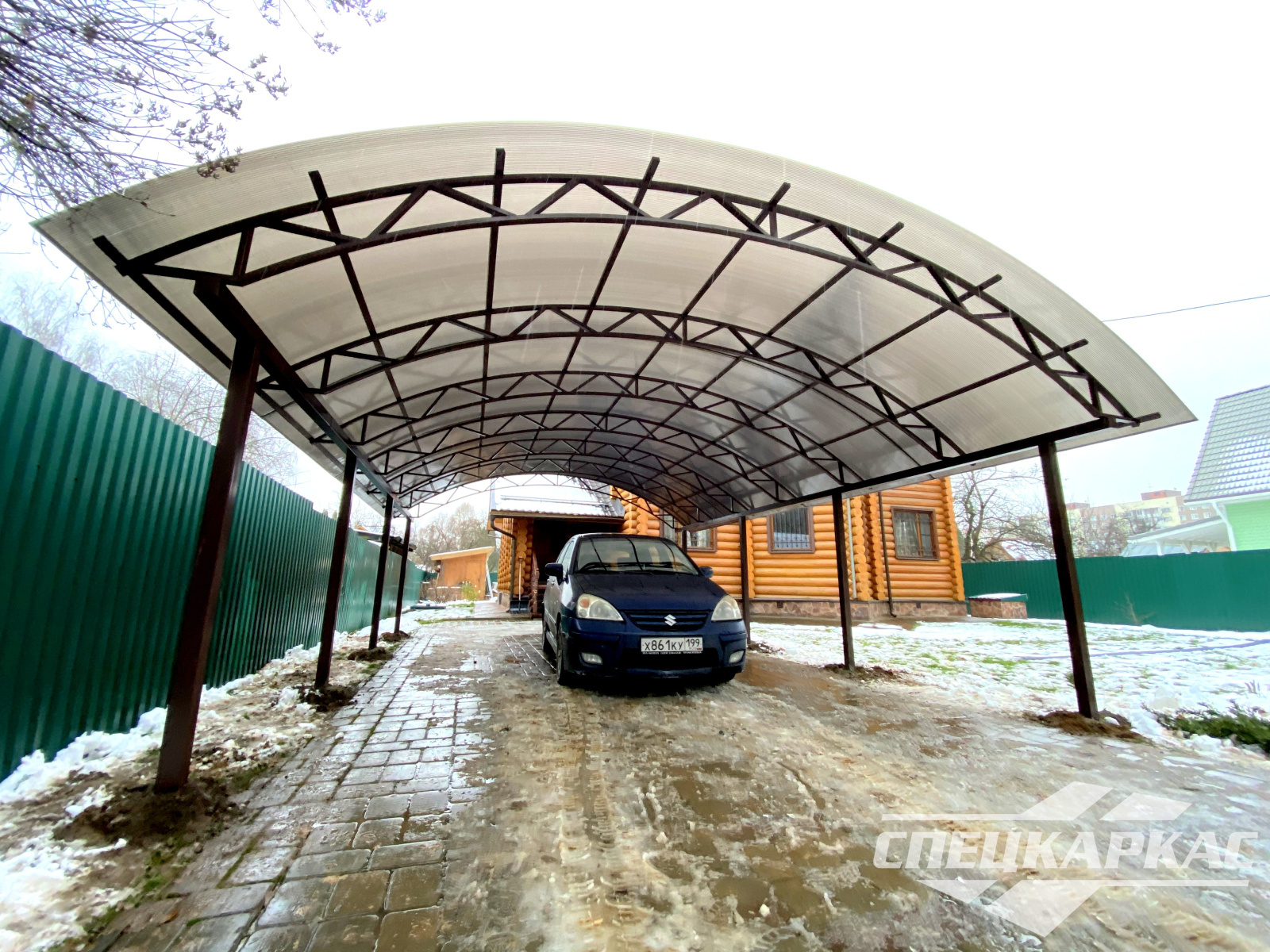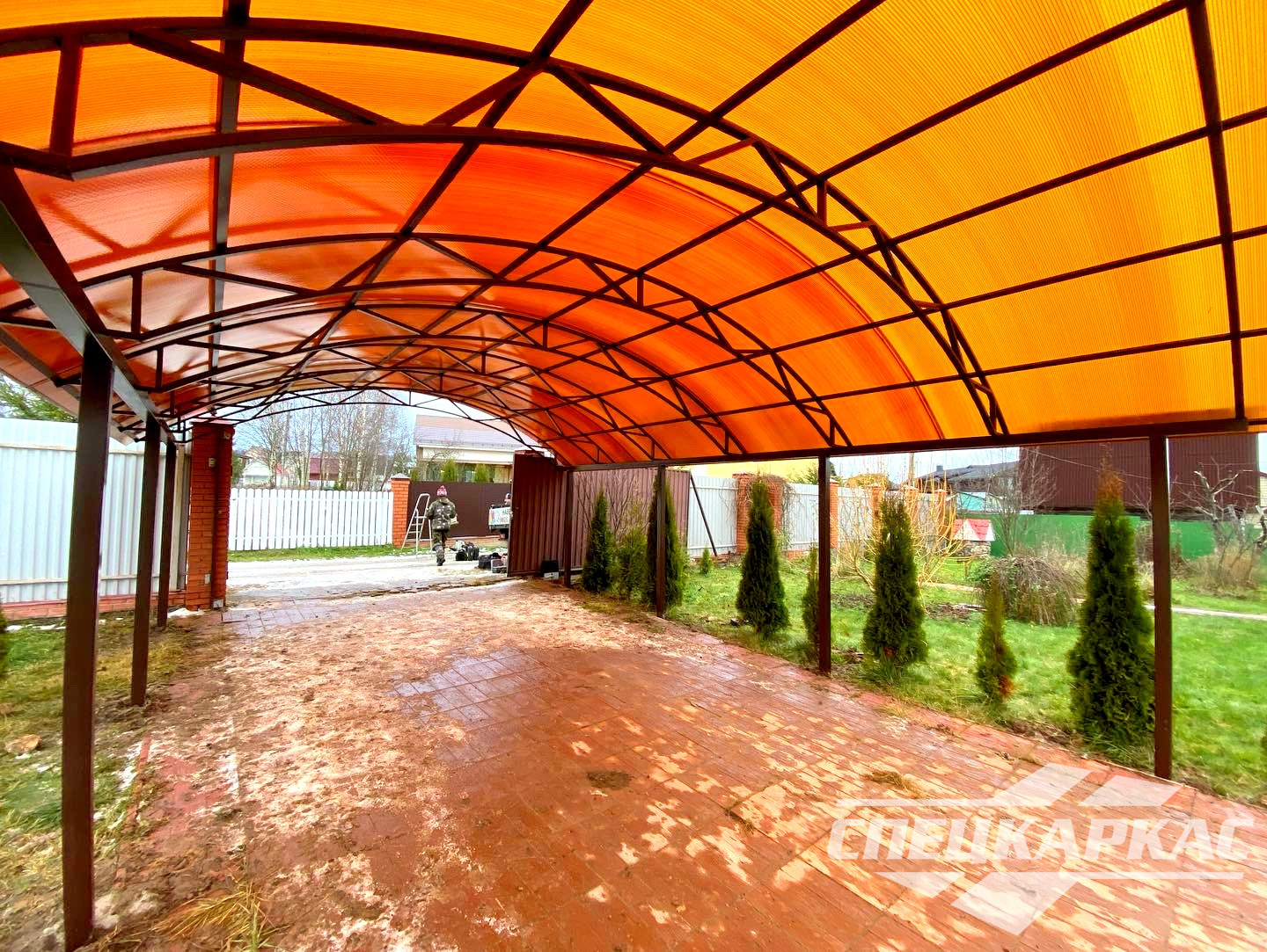Навес из листов поликарбоната способен стать настоящей «изюминкой» частного дома и приусадебной территории. Полупрозрачные сооружения эстетичны и надежны. Их устанавливают всего за 1-2 дня, за ними легко ухаживать – достаточно чистой воды и неабразивного средства. На первый взгляд кажется, что без такой конструкции вполне можно обойтись. Но стоит купить навес из поликарбоната от компании «Спецкаркас» – и жизнь станет намного проще и комфортнее. Ваше авто больше не будет ржаветь под дождем, крыльцо останется чистым даже в снегопад, на участке появится уютная зона отдыха в кругу друзей и близких.